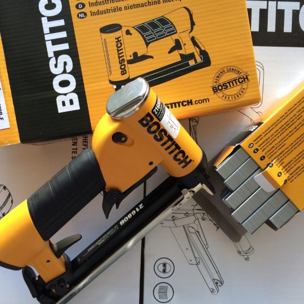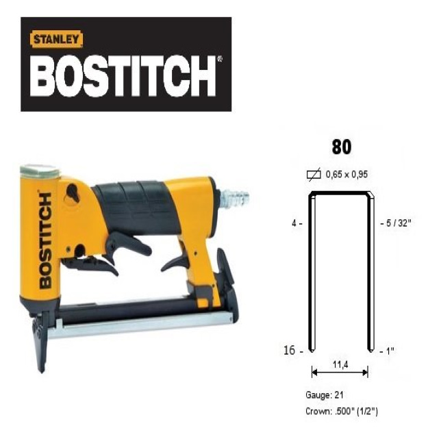 Пневматический инструмент Bostitch 21680B-E легко забьет обивочные cкобы 80 типа длинной 4-16 мм.