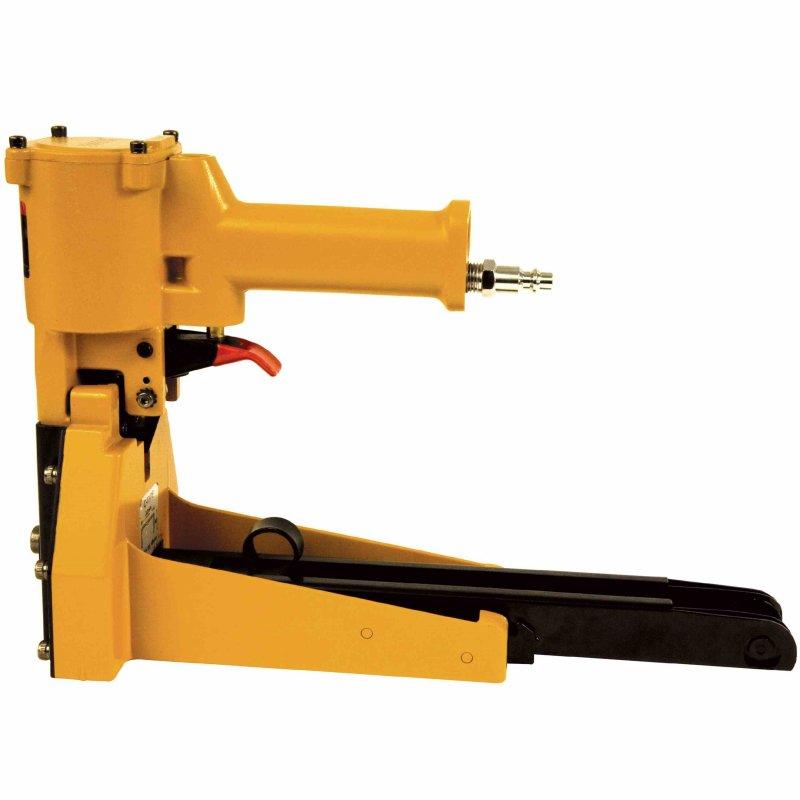 Пневматический упаковочный инструмент, предназначенный для сборки и зашивки коробов из гофрированного картона различной толщины. Имеет регулировку степени сжатия скобы. Инструмент позволяет осуществлять интенсивную упаковку коробок скобой при помощи сжатого воздуха. Удобная прорезиненная рукоятка и дополнительная ручка для удерживания инструмента при работе позволяет сделать работу данным инструментом удобной и комфортной. Надежная конструкция, корпус из прочного алюминиевого сплава – обеспечивают работу инструмента в любых условиях. Инструмент предназначен для промышленного применения.